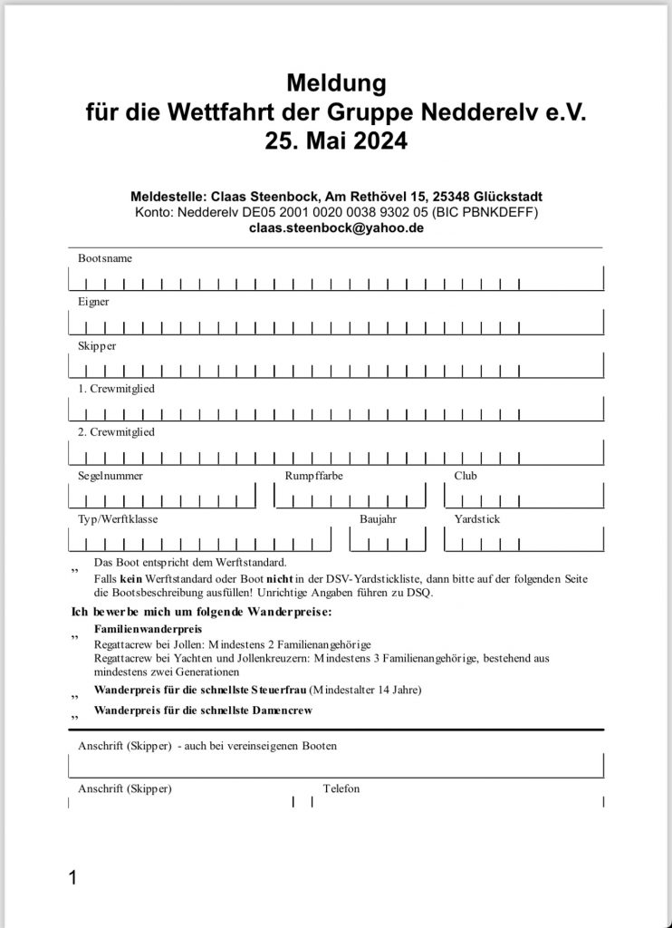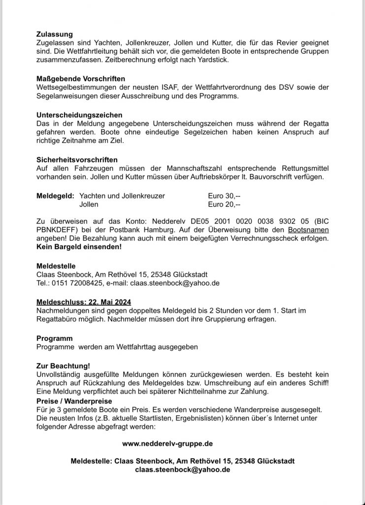 Ausschreibung zur 71. Nedderelv Regatta am 25.5.2024