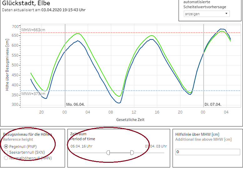 BSH Wasserstandsvorhersage und Pegelstand Glückstadt (neu)